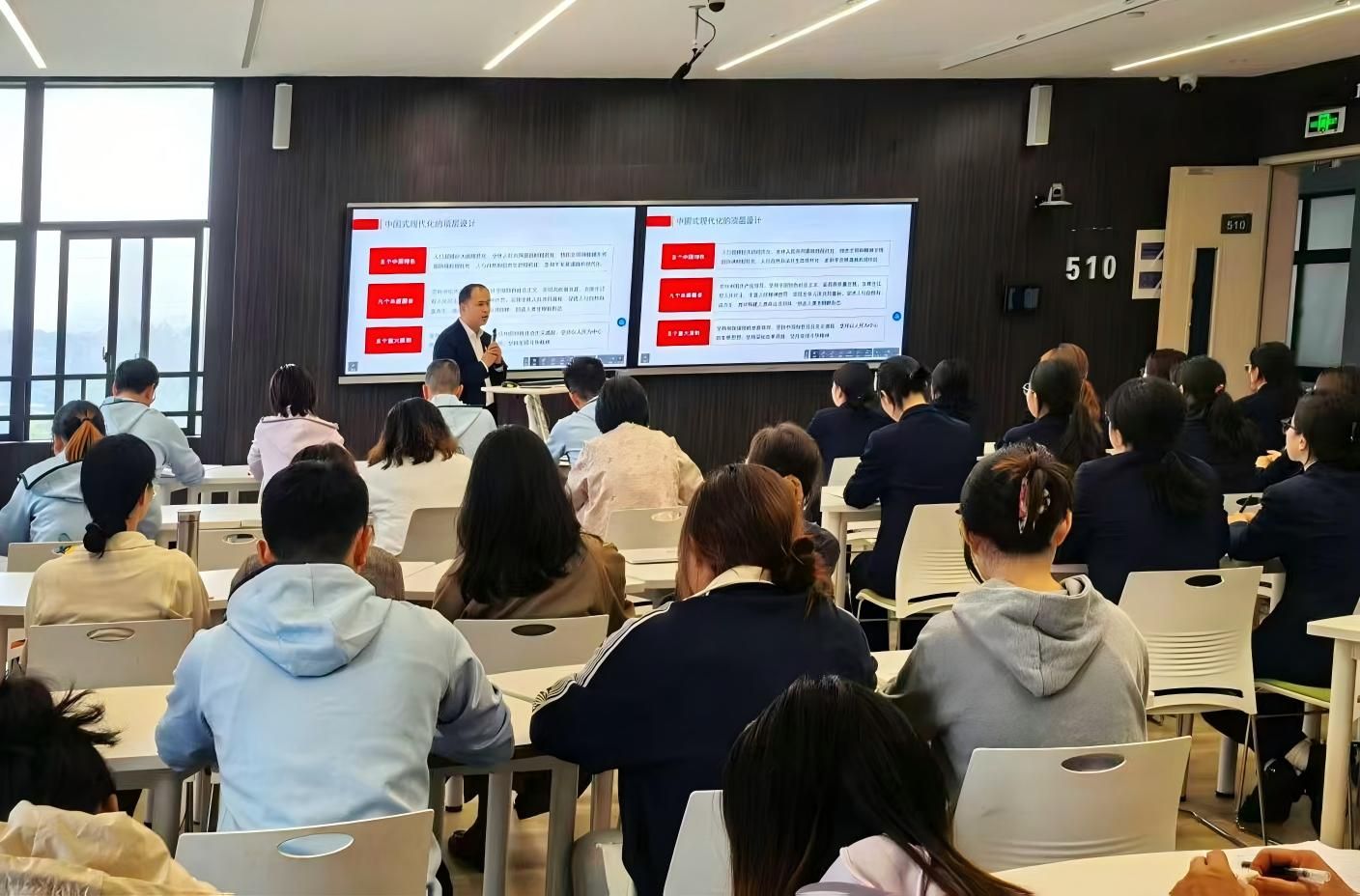章校长强调,全体师生应当在系统研读第一至第四卷的基础上,深化对第五卷的学习理解,坚持“读原著、悟原理”,运用“系统学、贯通学,重实践、求实效”的学习方法,将理论学习与院校建设、学科发展、育人工作相融合,切实把学习成效转化为推动学院内涵式发展的具体举措。